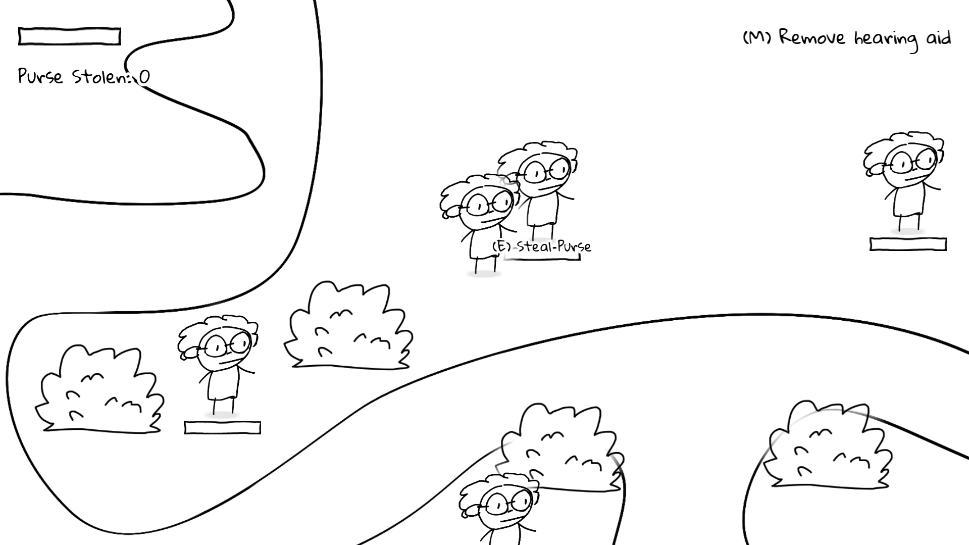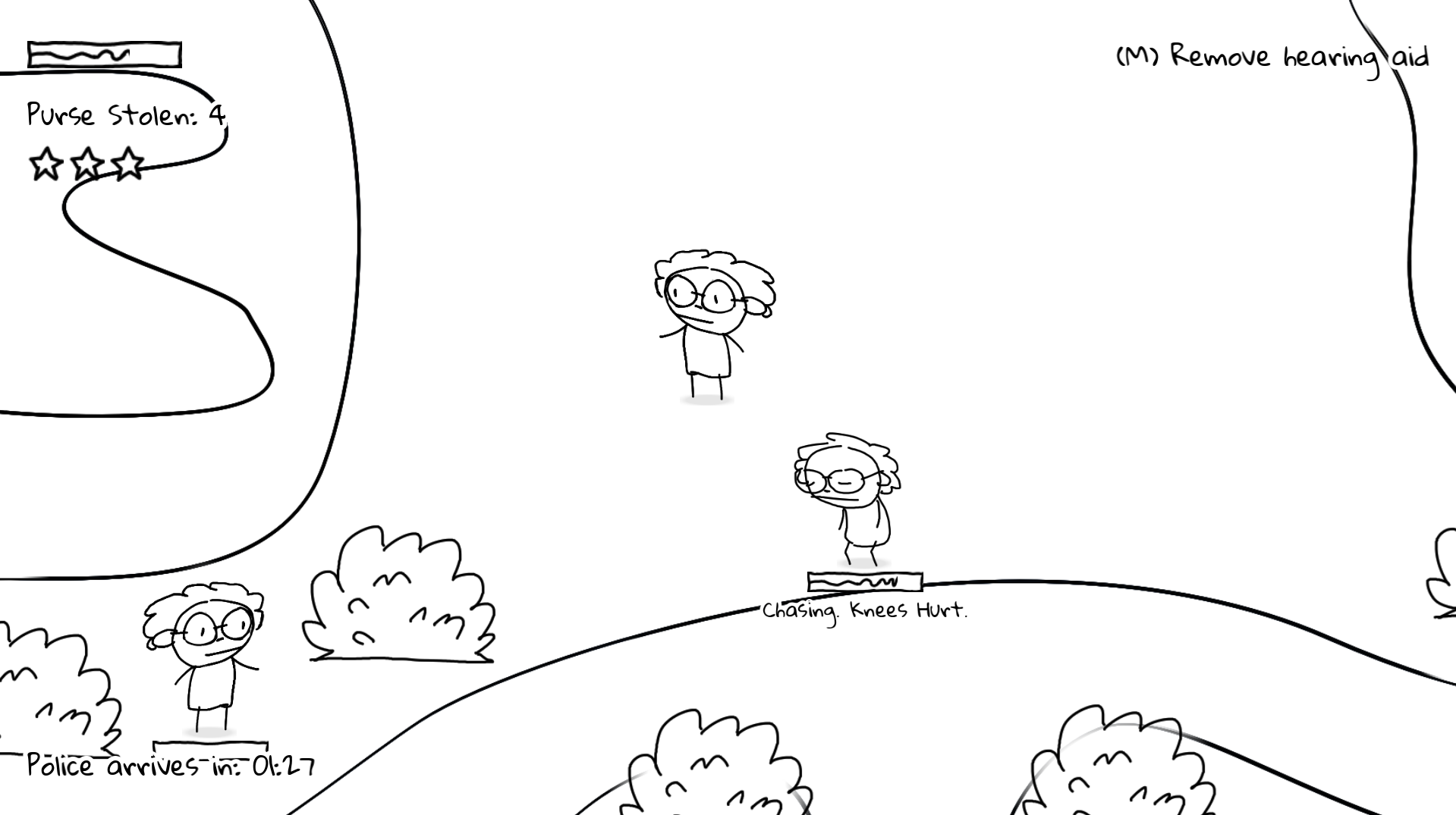 E to interact / steal purse from other granny