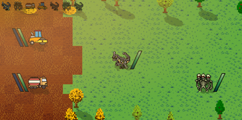 In order to keep the development going. The old and rusted heavy machinery has been repurposed for combat, to clear the site of monsters so that the robots can continue building the world.